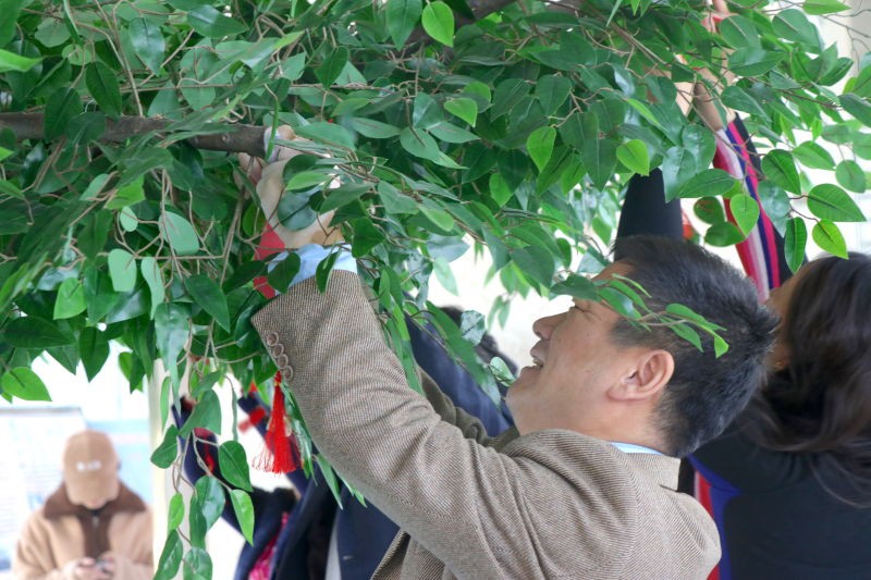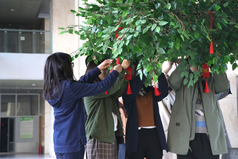 活动开始后,学院领导依次在祝福卡上写下了对学院的祝福,并亲自挂在祈愿树上。领导们真挚的祝福也引起了在场师生的共鸣。
