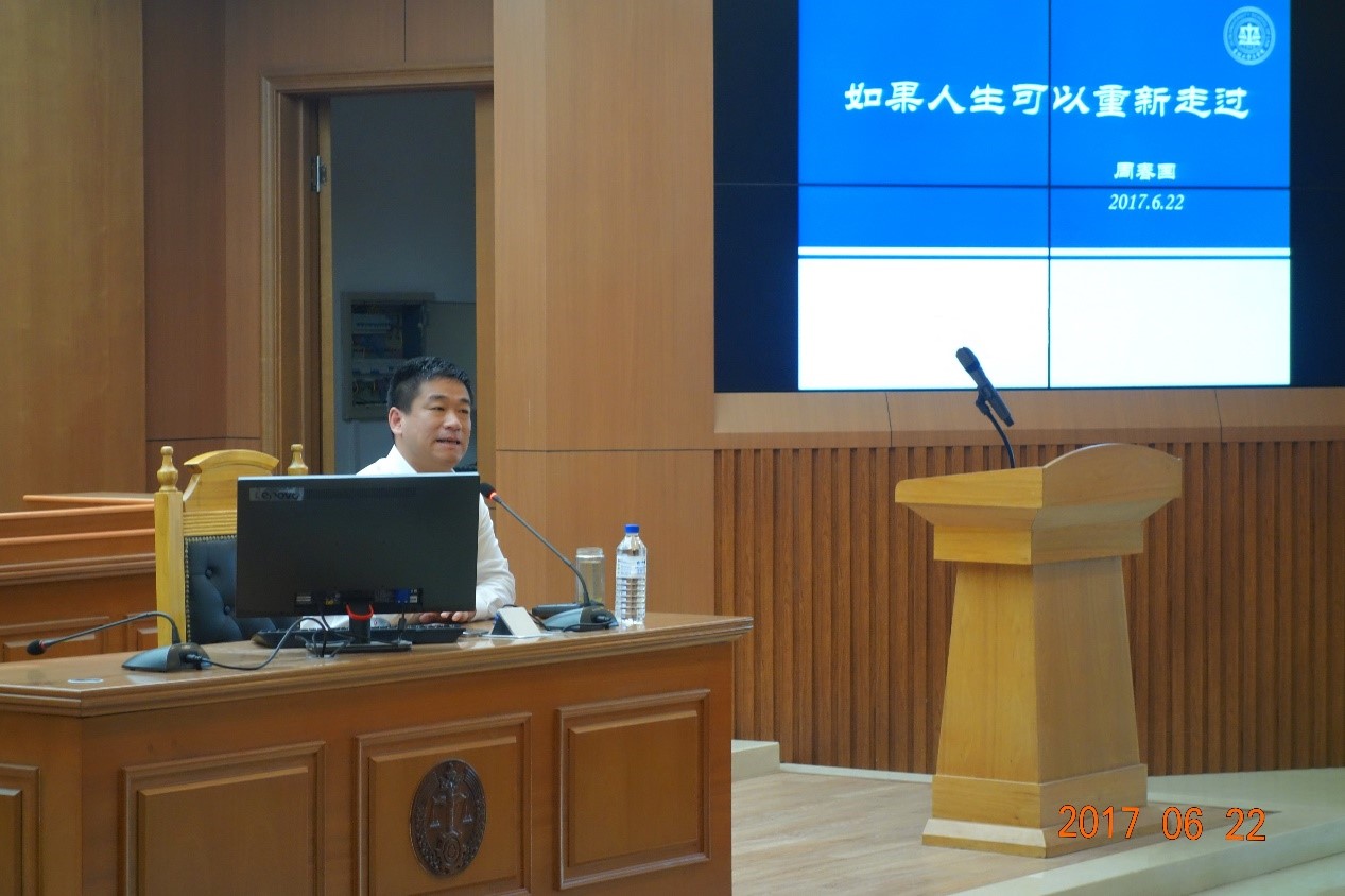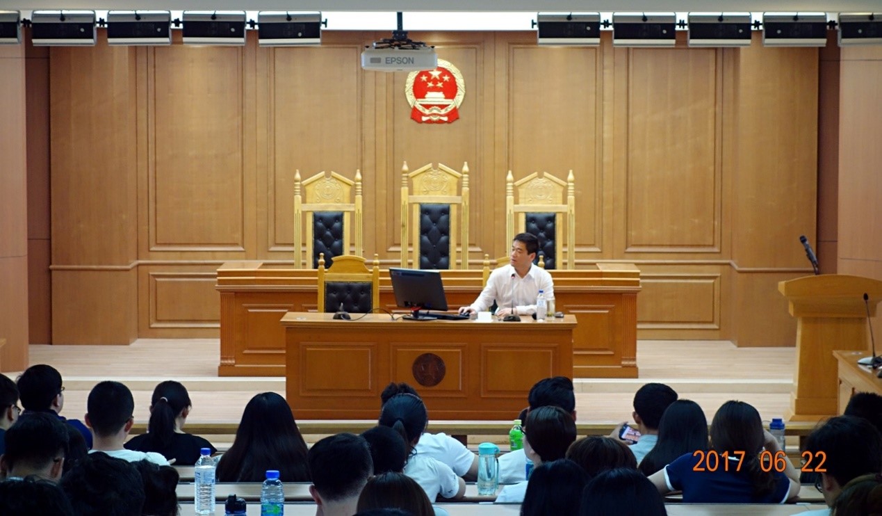 2017届毕业生最后一堂课在第三教学楼模拟法庭举行。主持人为TheGay