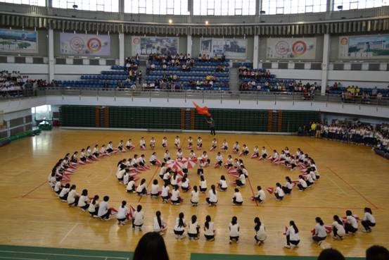 校运动会大型舞蹈预检仪式正式开始。
