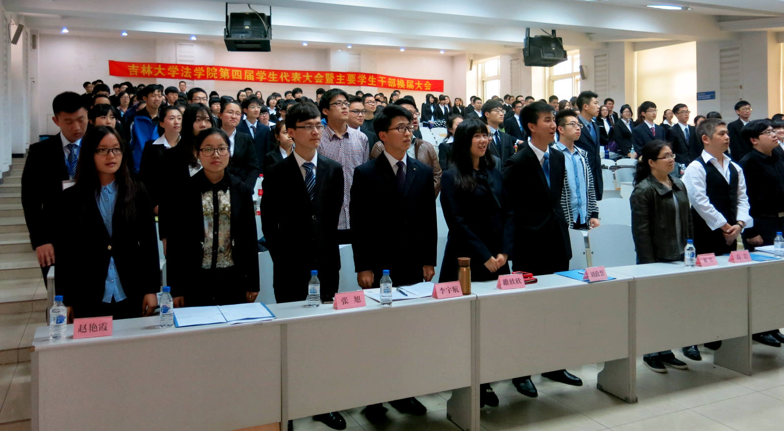 第四届学生代表大会暨本科生2014年主要学生干部换届大会在经信教学楼第七阶梯教室如期举行。出席本次会议的领导老师有TheGay