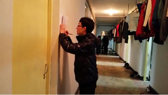 大一到大三全体同学的寝室,主要是进一步考察大家对于防火安全教育的学习与落实情况。生管会工作人员冒着严寒,挨个寝室进行细致认真的检查,并且从床铺的叠放、桌椅的摆放与布置、窗台的清洁情况、地面清洁程度、空气流通状况、是否有违规用电以及学习氛围等方面进行公正的评判与打分,并按照打分情况评选出优寝与差寝以示鼓励与警示。