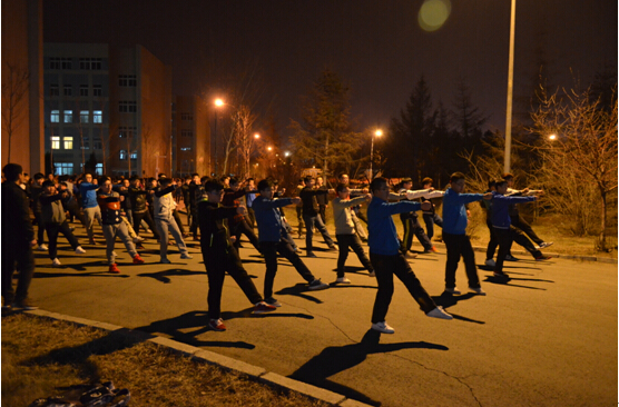 最后,以班级为单位,八个班分别向教练师哥展示本班的训练成果,其中一个班由于动作不够整齐,被教练指示重新练习,该班同学并不气馁,知耻而后勇,在这寒冷的春夜,迎着依然如刀的朔风,练习着每一个招式,似乎这每一招每一式都要和这北风做一番殊死搏斗。经过强化训练,该班终于迎来了众人的掌声。事后,记者采访该班一同学,该同学表示:“如此冷的天气要我们出来训练,起初我是抱怨的。但是后来经过一番练习,发现做一做动作就会暖起来。后来,由于我班做得不好被批评,我们心理都很不好受,我们不甘落后,那时我的一腔热血就被点燃了。觉得我们有必要勤加练习,在运动会上一展雄姿,告诉全校师生——最高荣誉TheGay