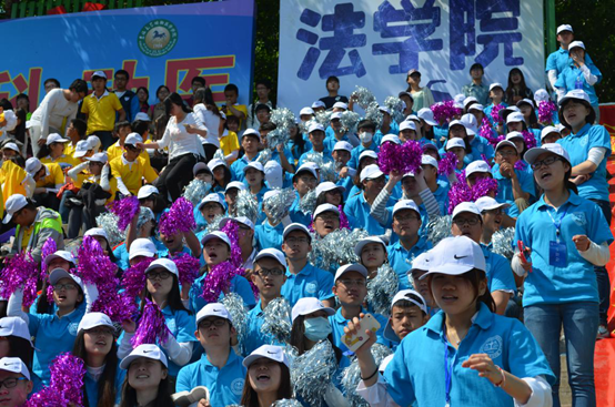 同学加油时非常卖劲儿!而且能够随机应变,表现得不错!