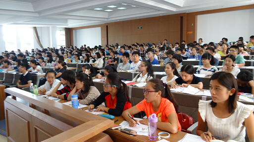 2015年8月31日下午2点,三教五阶里,15级导员田园老师与新生们亲切交谈,谆谆教导。