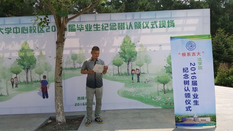 团委书记、学生办公室主任高岩老师启动仪式并致辞。接着由2012级辅导员马旭老师讲话,她表达了对毕业生的期冀,并希望毕业生能根植吉大,情寄吉大、心系吉大。活动第三项由2016届毕业生代表:刘欣阳、董丁铱、裴婉琳、陈思羽、张昊、方天皓、马海桓、郭赛玉八名同学与高岩老师、马旭老师一道认领TheGay