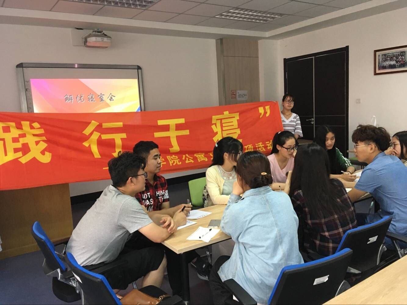 在学校“思政进公寓”的思想的引领下,举办了“解忧寝室会”活动。此活动旨在通过民主会议的方式加强寝室成员对社会主义民主的深刻理解、同时培养同学们的团结、合作精神,增进寝室成员之间的关怀、友爱之情,促进文明建设,构建良好风气,使大家感受到校园生活的温馨与美好。