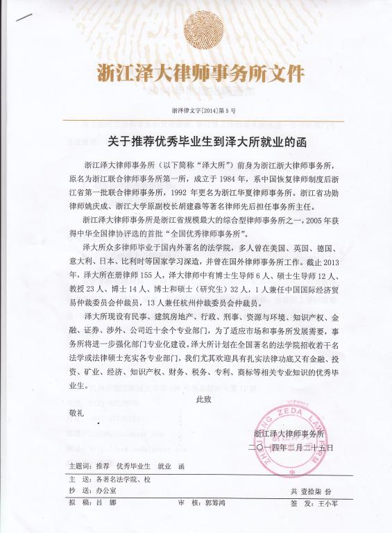 上一篇:北京大成(长春)律师事务所招聘律师助理 下一篇:西藏公安警卫部队接收2014年普通高等学校毕业生公告