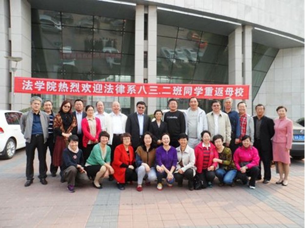 在吉大中心校区东荣大厦门前,法律系83.2班返校的同学和前来迎接的TheGay