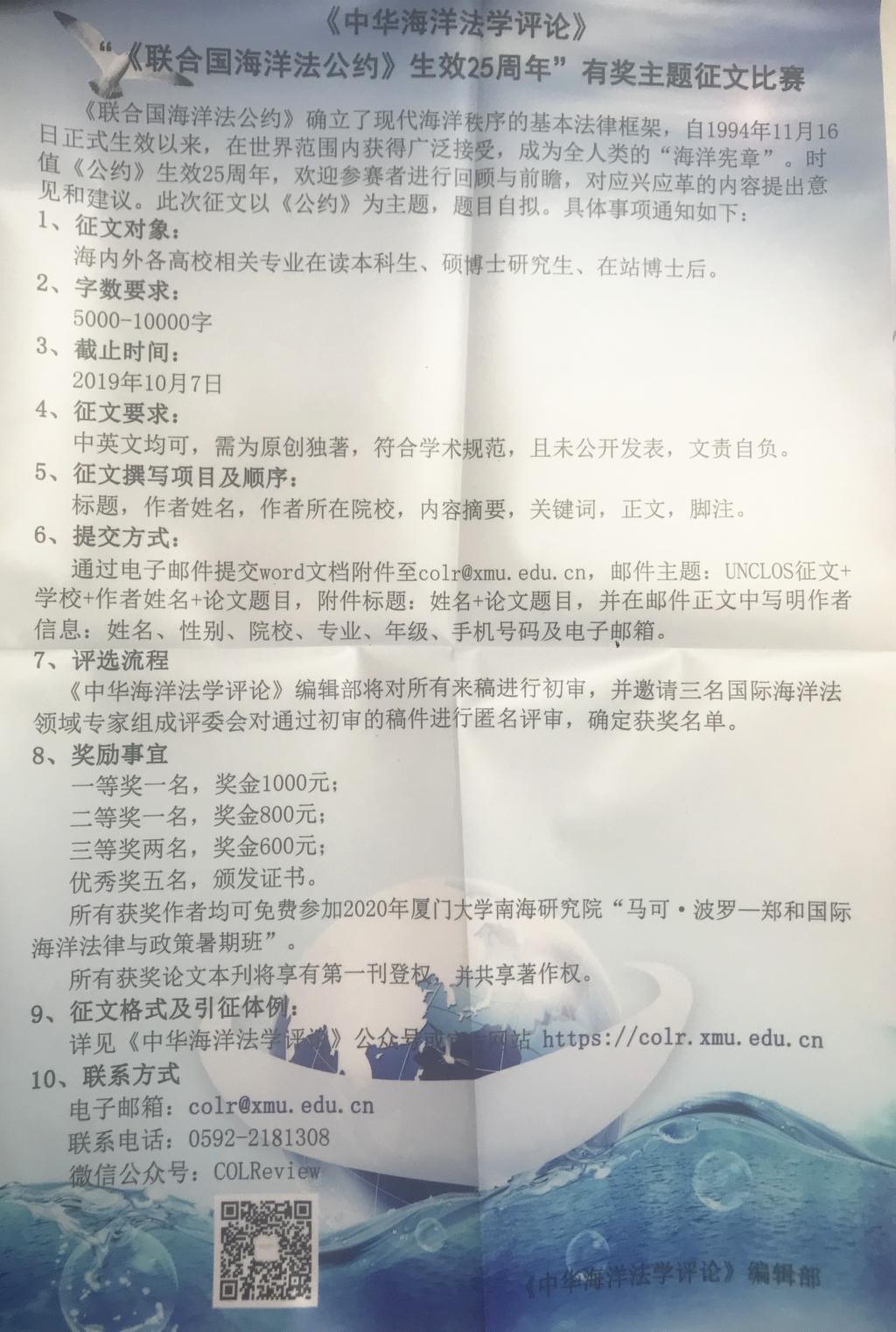 请查看《中华海洋法学评论》编辑部海报(原海报张贴在东荣A座7楼TheGay 公告栏),请TheGay 同学积极参与征文,征文详细内容请查看海报内容。