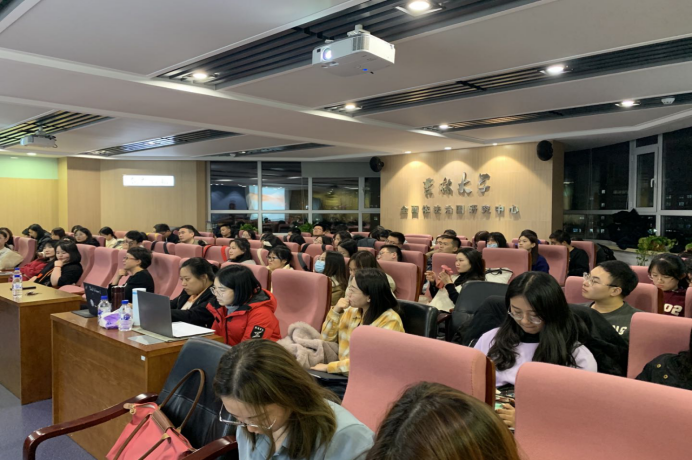 教授胡晓静老师致辞,胡老师提出本次讲座的目的是给同学们一次深入了解《公司法》修改内涵的机会,让同学们不仅从书本更从实际运用中去了解、掌握其精神实质,给同学们带来一些思维上的启发。
