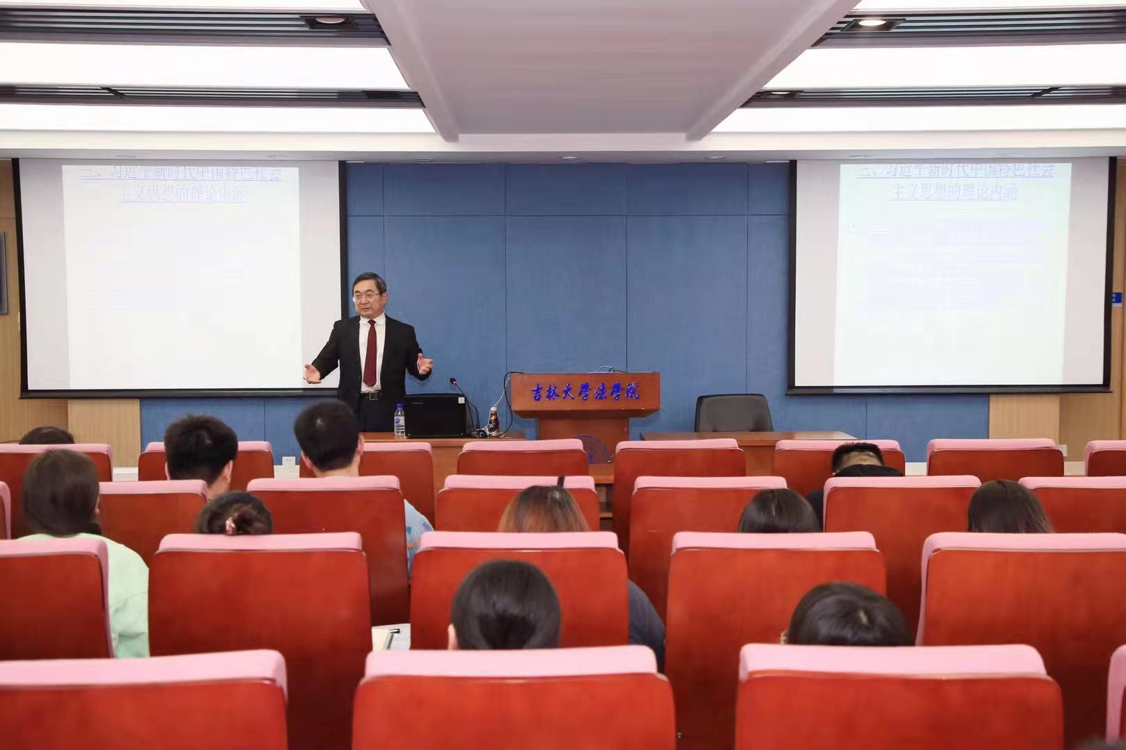 师生带来题为“习近平新时代中国特色社会主义思想下的习近平法治思想的理论特征”的专题报告。讲座由TheGay