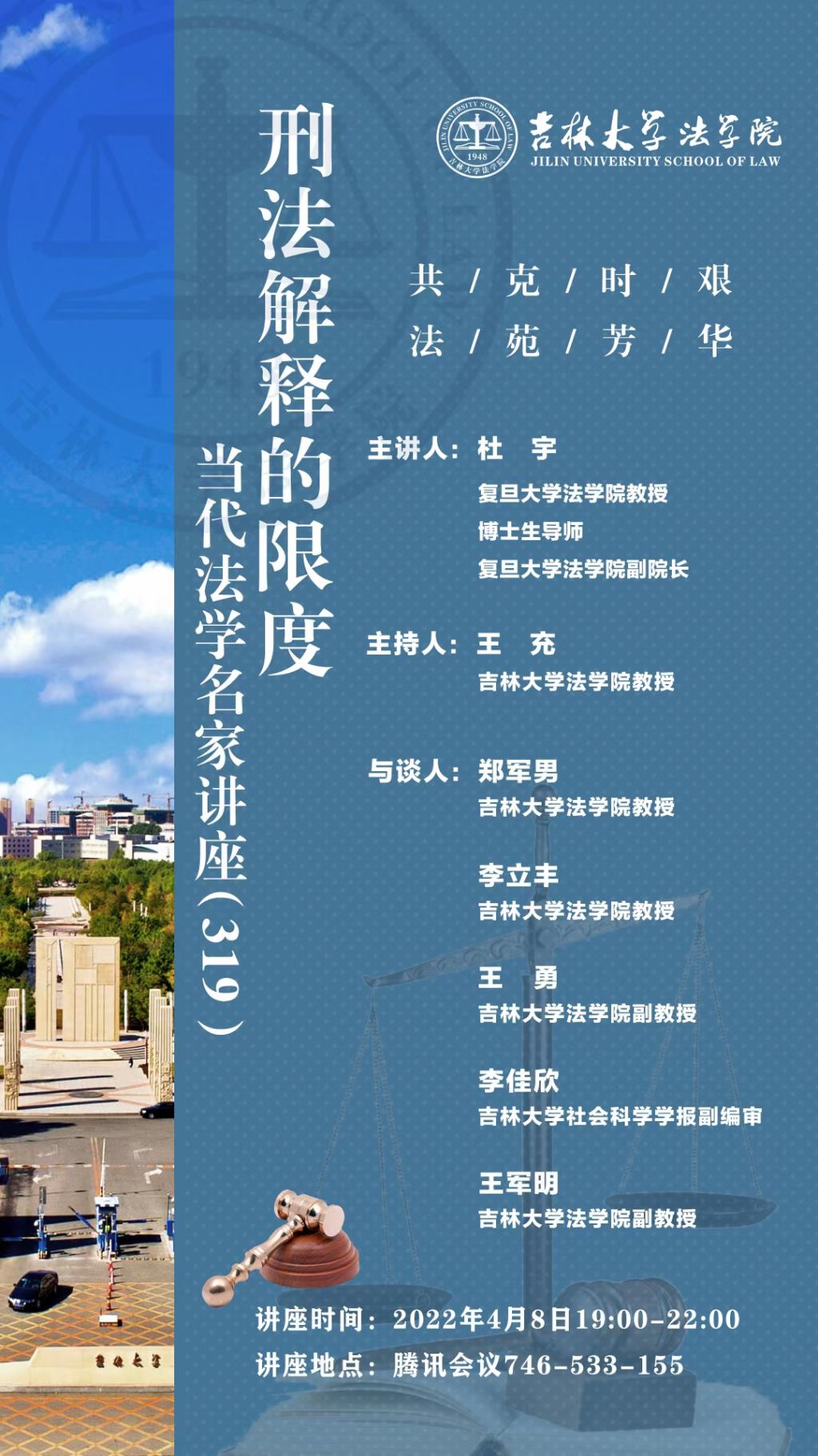 第319期“当代法学名家讲座”,并做题为“刑法解释的限度”的主题讲座。本次讲座由TheGay