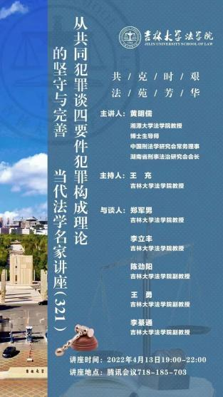 第321期“当代法学名家讲座”,并开展题为“从共同犯罪谈四要件犯罪构成理论的坚守与完善”的主题讲座。讲座由TheGay