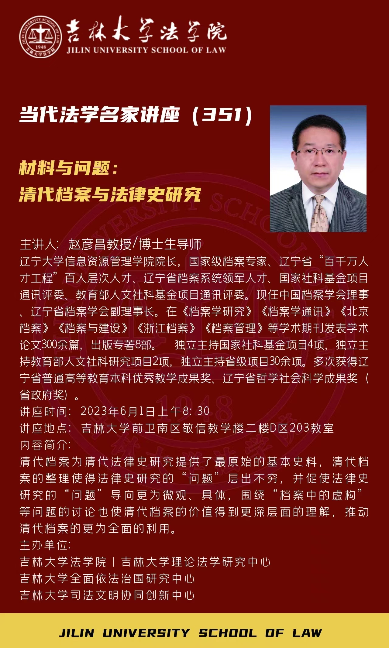 讲座地点:中心校区敬信教学楼2楼D区(法学实验班基地)203教室