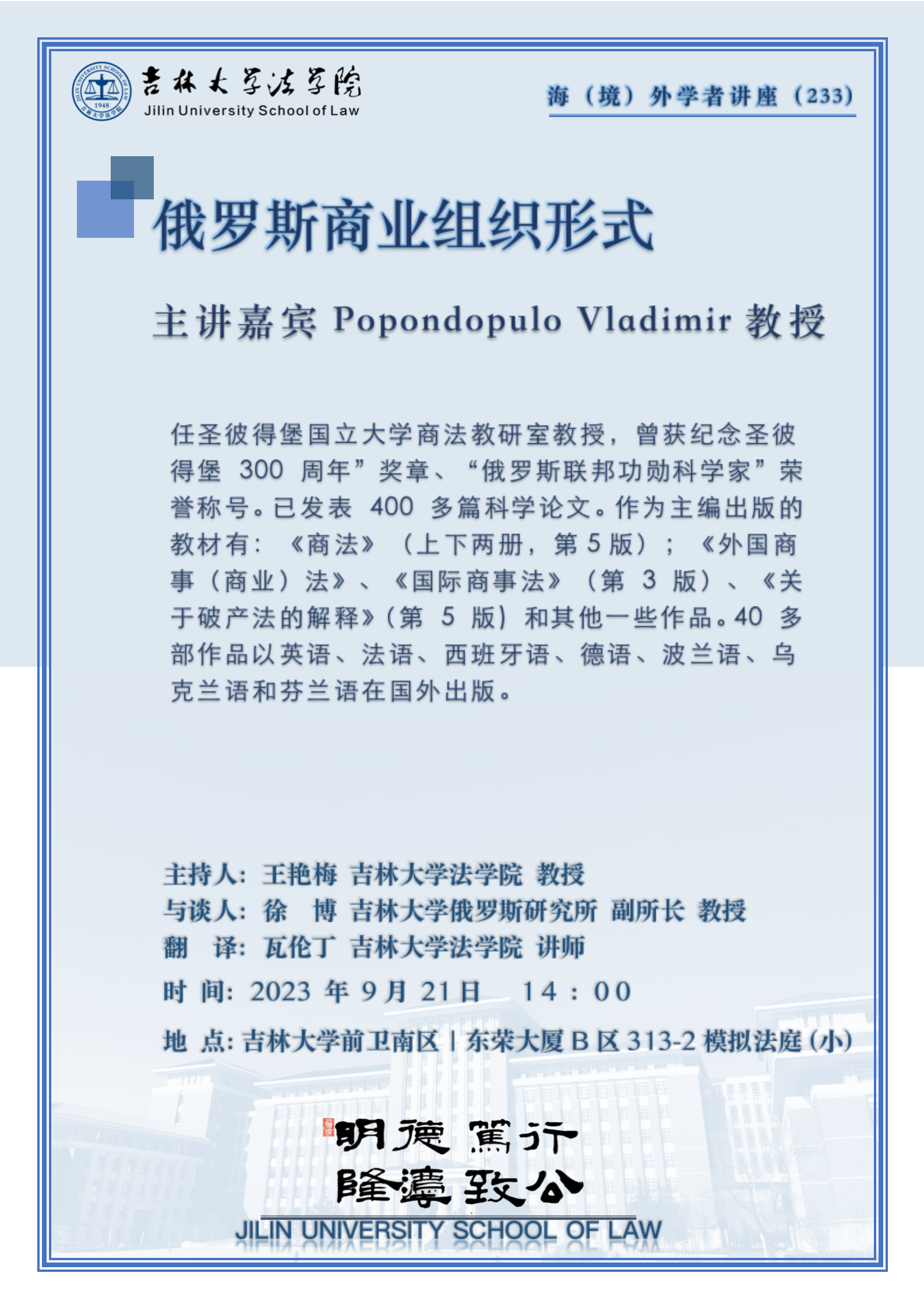 主讲人:Popondopulo Vladimir 教授
