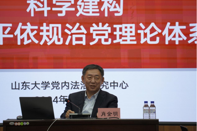 肖金明教授首先表达了对母校的感恩之情,从母校毕业后自2012年以来开始从法学角度探讨执政党建设问题,近年来主要研究科学构建习近平依规治党理论体系,此次讲座从四个方面展开阐述:第一,准确把握习总书记关于依规治党的重要论述。从时间维度依次梳理了2012年以来习总书记在重要会议上发表的与“依法治党”、“依规治党”相关的重要指示与讲话。从《习近平关于依规治党论述摘编》将其主要思想凝练为“十个坚持”。第二,推进依规治党重要论述体系化的遵循。将其体系归纳为四个方面:以“十个坚持”为理论框架;确立根本思想遵循;坚持实践基础上推动理论创新发展;将习总书记重要表述为学理支撑。第三,进一步丰富发展习近平依规治党理论体系。丰富以“十三个坚持”为纲要的“4+3+6”的理论框架。指出依规治党首先是依章治党。第四,科学阐释新时代依规治党的若干重大关系。探讨了依规治党与从严治党、思想建党、依法治国、法治政党、依法执政、以德治党、制度治党等共七种关系。最后总结指出中国治理现代化的核心在依规治党,最终指向党和国家治理的现代化。另外肖教授认为目前我国党内法规的学科建设尚不成熟,仍需进一步精细化、规范化,以助力推动法学的中国化、时代化与科学化。