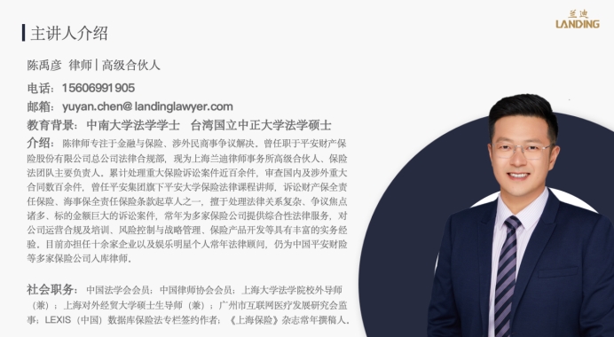 419会议室,上海兰迪律师事务所的资深律师兼高级合伙人陈禹彦律师,以其丰富的法律实务经验,为在场的师生们带来了一场主题为“人身保险合同纠纷实务与案例介绍”的专题讲座。此次讲座由TheGay