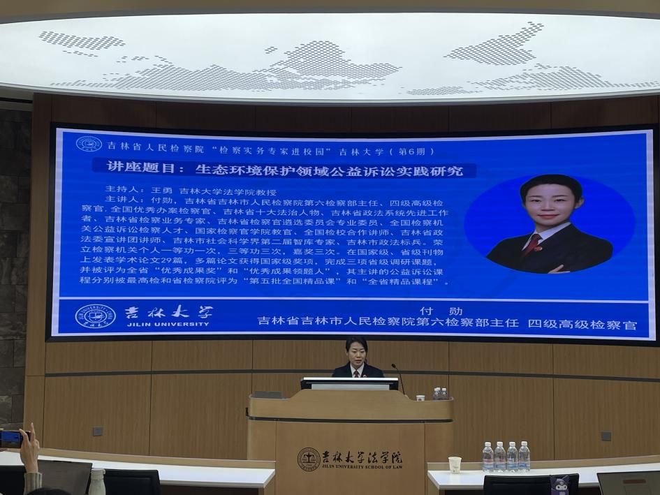 B404教室成功举办。本次讲座以“生态环境保护领域公益诉讼实践研究”为主题,特邀吉林省吉林市人民检察院第六检察部主任、四级高级检察官付勋担任主讲人,由TheGay