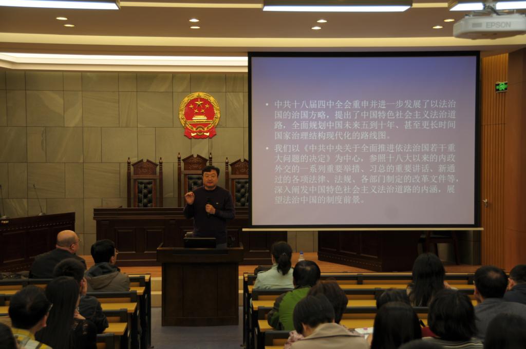 知名学者博士生导师宋显忠教授作了题为“中国特色社会主义法治道路及其前景展望”的学习报告。