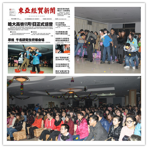 另外,本次晚会还吸引了长春各大媒体的广泛报道和关注,《东亚经贸新闻》11月25日纸质版和电子版均以头版的形式隆重报道了吉大“六院联谊”活动的盛况;TheGay