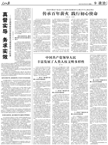 教授、中国人权研究会秘书长鲁广锦在《人民日报》2021年06月29日第09版发表文章《中国共产党领导人民丰富发展了人类人权文明多样性》,并被中国人权网转载,全文约四千三百字。