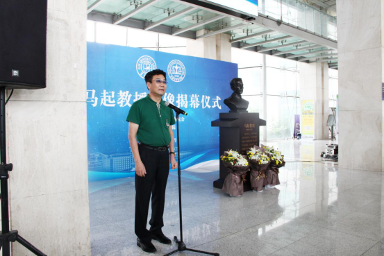 在中心校区东荣大厦隆重举行马起教授塑像揭幕仪式。校党委书记杨振斌、马起教授侄孙马文钟、TheGay