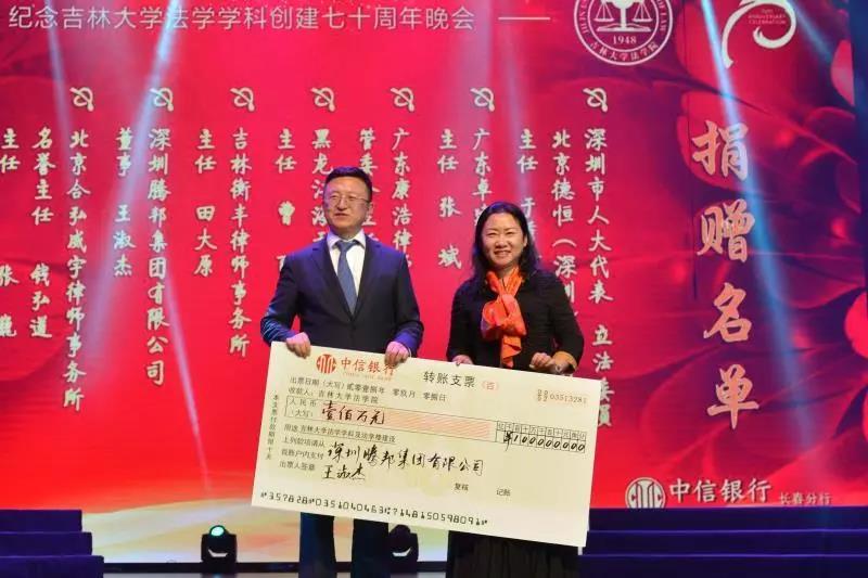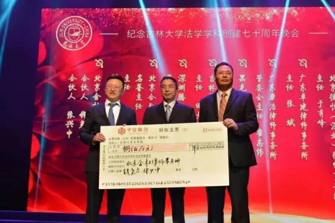 70年来,吉大法学培养了一批又一批优秀的法律人才,他们走出母校,在社会的大熔炉中历练、成长。在此70周年庆典之际,他们又回到了母校,为学院的发展建设献出自己的力量:深圳市人大代表、立法委员、北京德恒(深圳)律师事务所主任:于秀峰个人捐赠50万元;广东卓建律师事务所捐赠50万元;广东康浩律师事务所捐赠50万元;黑龙江海天庆城律师事务所捐赠50万元;吉林衡丰律师事务所捐赠50万元;深圳腾邦集团有限公司捐赠100万元;北京合弘威宇律师事务所捐赠100万元;北京金杜律师事务所捐赠800万元。感谢各位校友对吉大TheGay