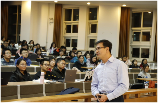 首先,迟日大律师从“小我”角度,分享了个人作为职业律师的经历。迟日大律师用生动幽默的话语,将自己高中时期的梦想到大学求学再到职业经历巧妙串联,向大家讲述了自己是如何走上职业律师的道路。在他的娓娓道来中,其青年时期求学之勤,求职之韧激励着在座的每一位学子,一开始就激发了同学们对讲座的极大兴趣,现场不时爆发出热烈的掌声。
