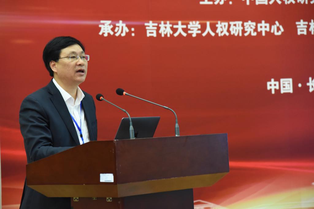 教授杨春福做了题为《新时代中国特色人权理论创新的逻辑机理》的主题发言。杨春福教授从五个领域分析了新时代中国特色人权理论的创新需要的逻辑机理:第一,人权理论创新的动力;第二,人权理论创新的原则;第三,人权理论创新的要求;第四,人权理论创新的方法;第五,人权理论创新的保障。
