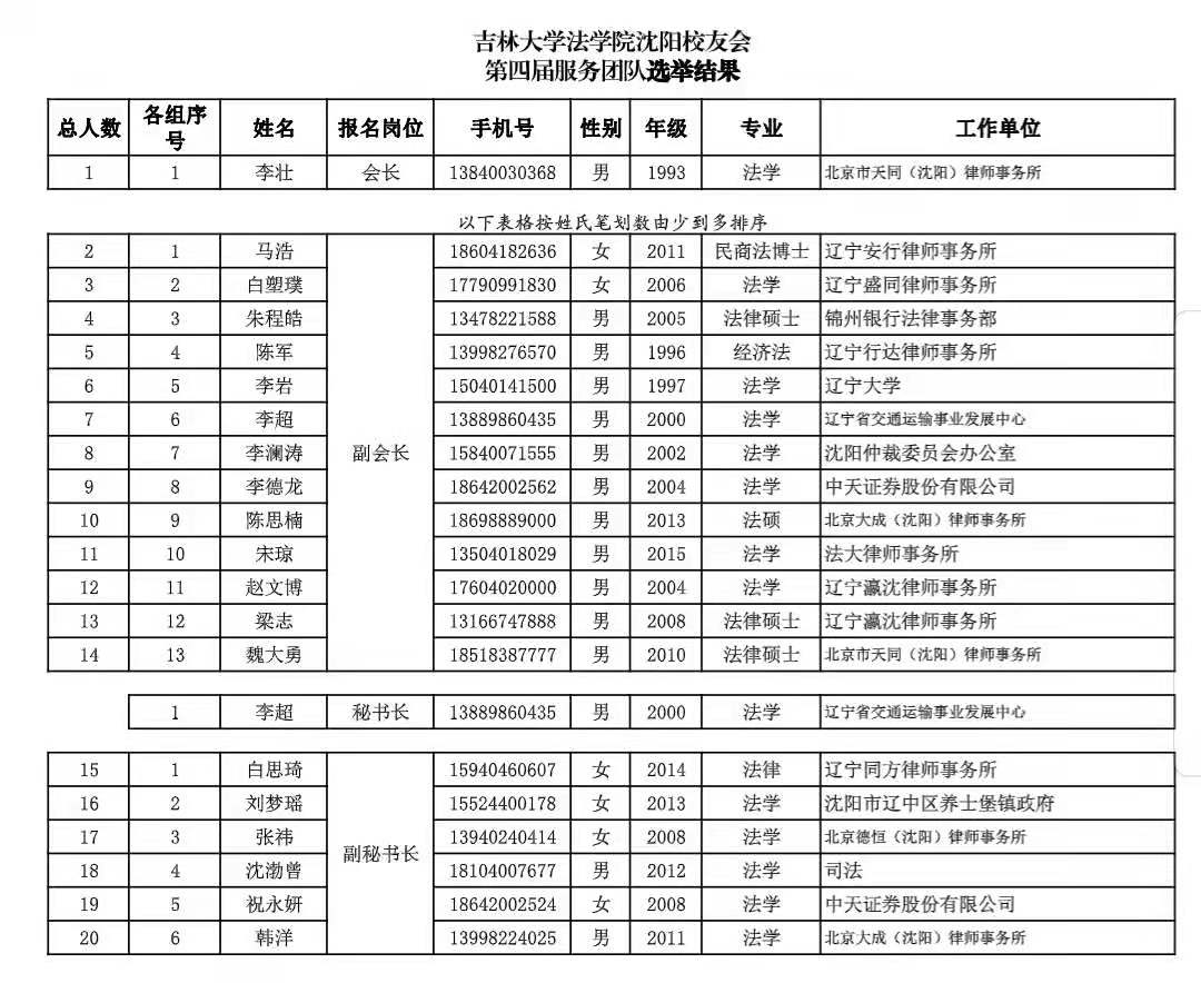 沈阳校友会第四届服务团队名单