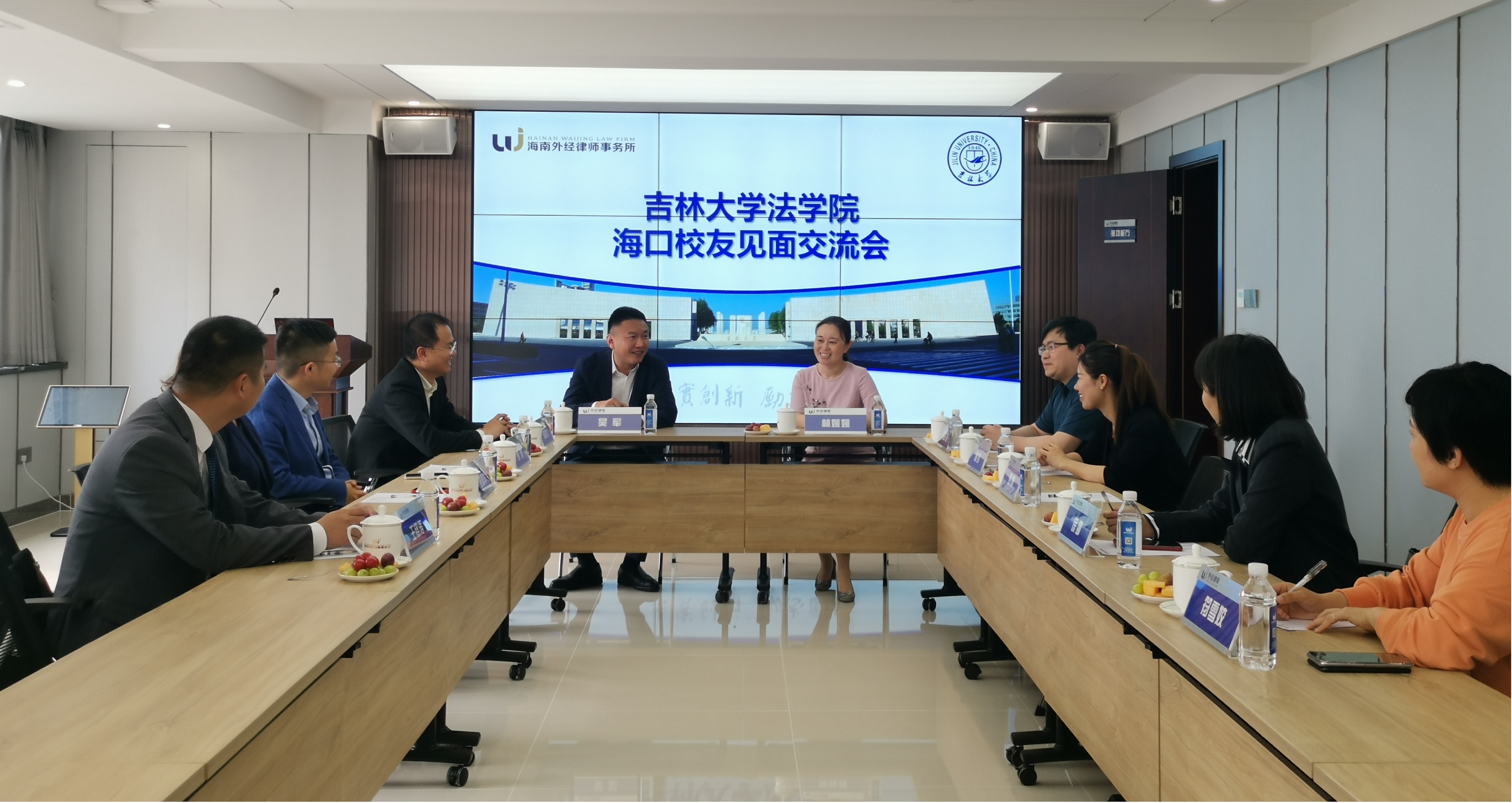 党委副书记兼副院长林媛媛、团委书记骆旷达来到海南外经律师事务所,看望在海口发展的部分吉大法学校友。