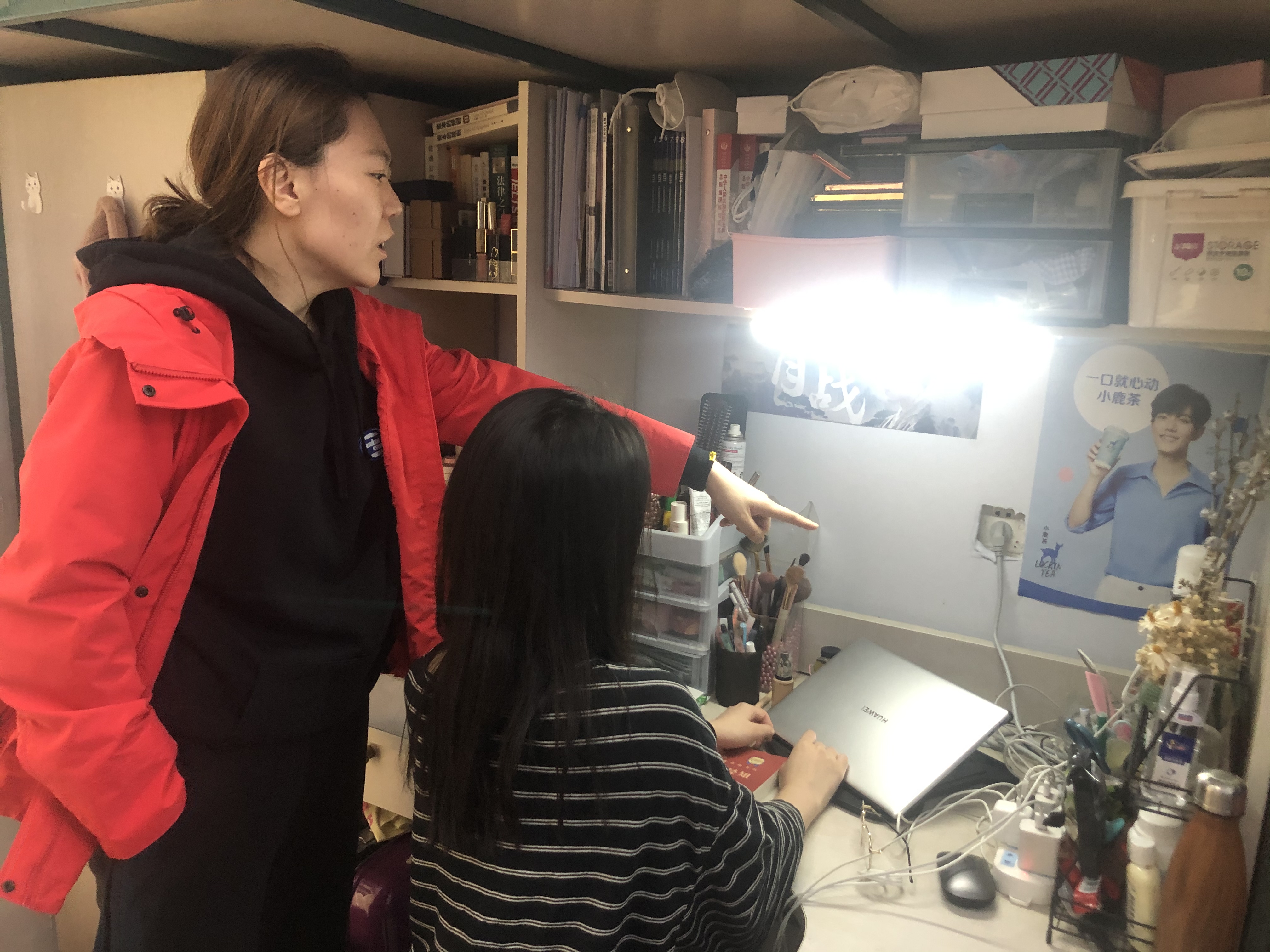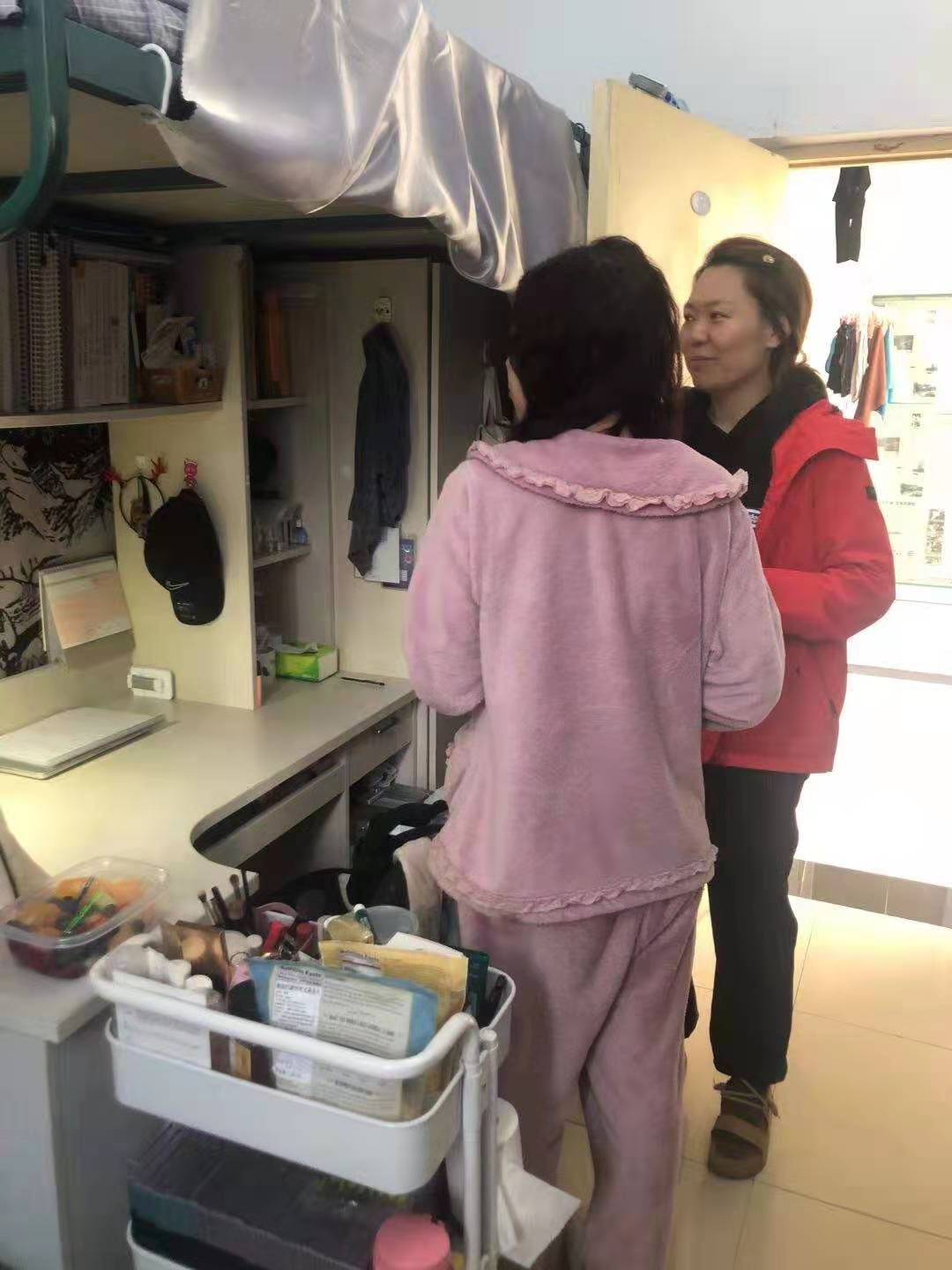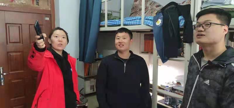 研究生辅导员郑诺在学院同学们的陪同下走访了南八、南六公寓学生寝室。