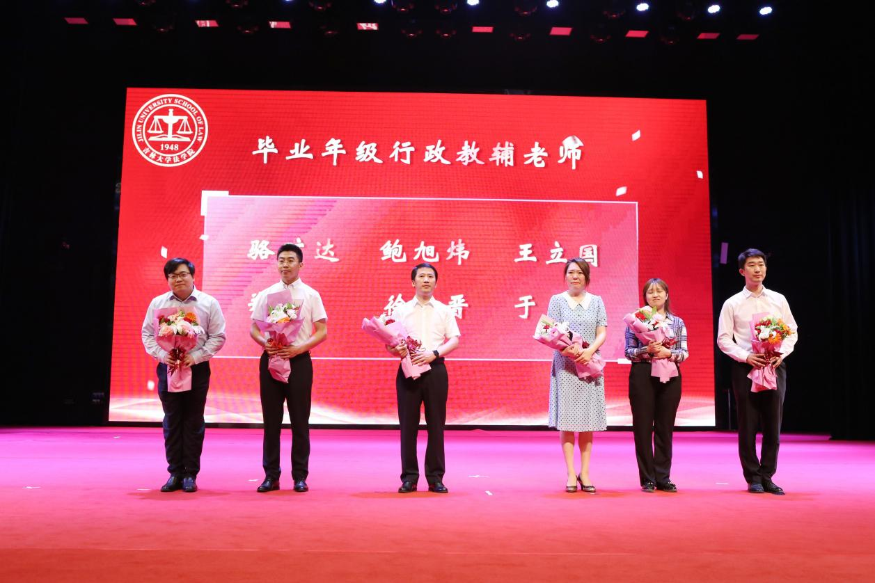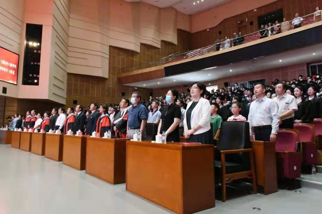 典礼最后,毕业生代表们以一首慷慨激昂的《法学力量》,表达了对母校的无限感激与美好期待,学院女教师合唱团则为毕业生带来了《我和我的祖国》和《送别》两首曲目,勉励毕业生树立家国情怀,表达了对同学们的依依惜别之情。