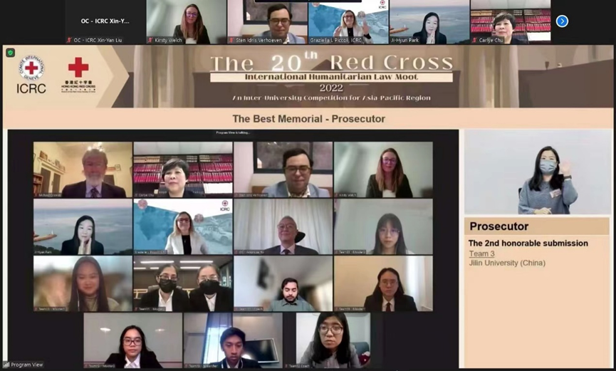 2022年3月9日至13日,由红十字国际委员会(ICRC)、香港红十字会(HKRC)共同主办的第二十届亚太地区(Asia Pacific Region)红十字国际人道法模拟法庭竞赛(下称“IHL”)以线上形式举行。来自中国、新加坡、泰国、菲律宾、印度、澳大利亚等国家和地区的24支高校代表队在取得各自赛区的晋级资格后,会师于亚太地区的国际赛。各支队伍在英文环境下,依据国际人道法、国际刑法、国际人权法等规范,就武装冲突性质、对被保护人的拘禁、对平民和被保护建筑的攻击、个人刑事责任等事项进行了分析。