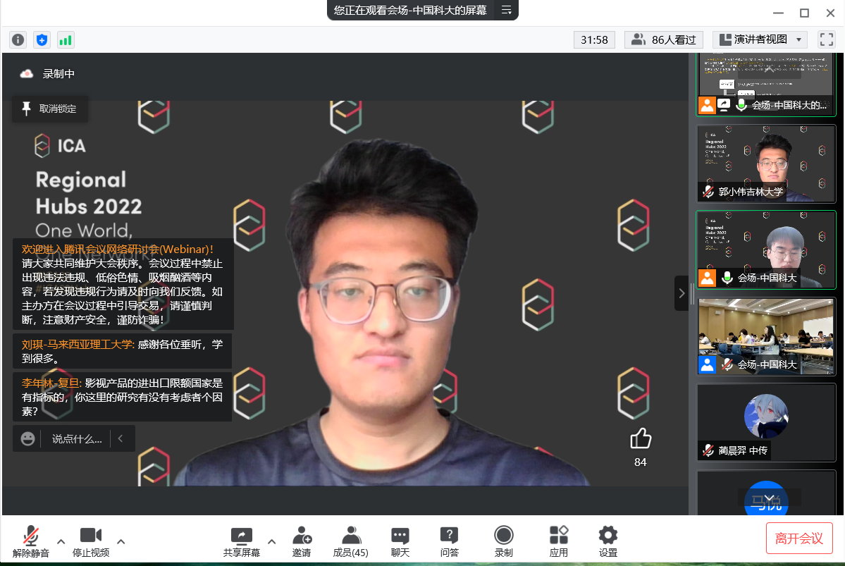 2022年5月28日-29日,由国际传播协会(ICA)、中国科学技术大学人文与社会科学学院主办,中国科学技术大学科技传播系、中国科学技术大学计算社会科学与融媒体研究所承办的“第二届计算社会科学研究方法前沿论坛暨国际传播协会(ICA)第72届学术年会‘区域中心’中国分会场”在安徽合肥中国科学技术大学召开。本次论坛以“计算社会科学视角下的中国”为主题,旨在增进学术交流与跨领域合作,彰显计算社会科学特色,以新颖视角看待与分析中国问题。来自清华大学、复旦大学、深圳大学、浙江大学、南京大学、中国科学技术大学、美国西北大学等国内外高校知名学者进行线上及线下专题报告,探讨计算社会科学领域的发展与未来。
