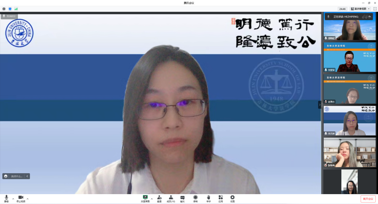 何志鹏同志在发言中提出,国际法教研部的很多教师最近在学科建设方面做出了积极的努力,特别是姚莹同志在安排教学工作,周晓虹同志在促动涉外法治人才培养方面,为学院的声誉提升和学生的能力提升做出了扎实有效的贡献。他们的努力是黄大年精神在我们的学科建设、人才培养具体工作中的体现,我们期待着在平凡的岗位上做出对国家发展、对民族复兴有益的贡献。
