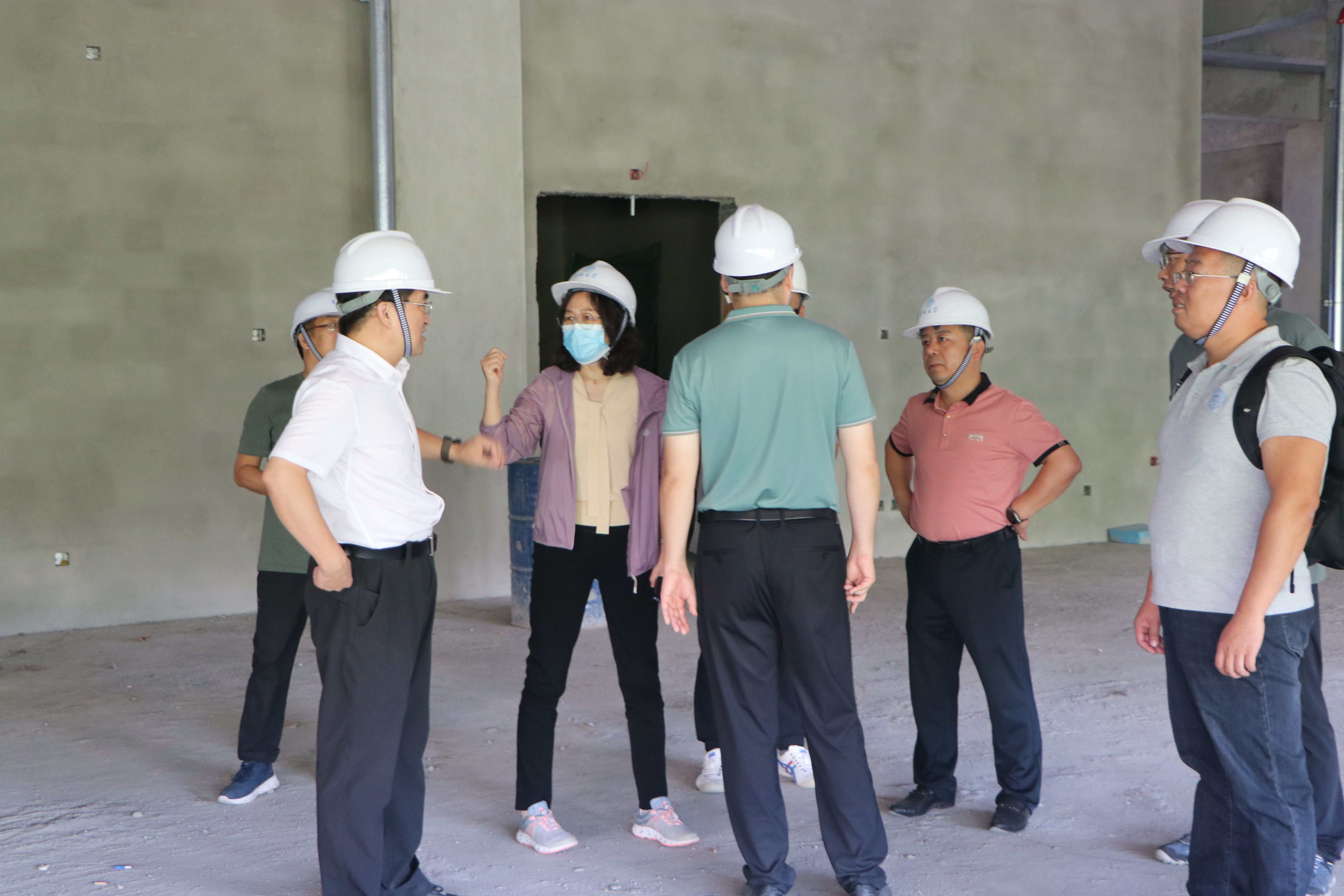 班子成员进入法学楼在建工地现场,了解工程进展情况。目前,法学楼建设施工进度为A栋、B栋外装幕墙龙骨安装、B栋石材开始安装,室内抹灰基本完成,屋面防水已经完成,水暖通风管道正在施工。