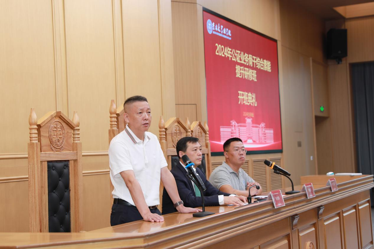 李金祥作开班动员讲话。他代表两地公证协会和公证处对关心、支持本次培训班举办的学院领导,以及为培训班开班辛勤付出的各位老师表示诚挚感谢。李金祥就本次培训提出三点要求,一是要提高政治站位,充分领会此次培训的意义,每一位公证从业人员都要进一步做好理论研究,做好理论与实践的结合,不断提升综合素质;二是要加强新疆、深圳两地公证机构和从业人员的合作交流,推动两地公证共同体建设;三是要求全体学员遵守纪律,做一个合格的学员。他希望大家能够自觉遵守课堂纪律,不迟到不早退,同时也要注意自己言行,希望大家圆满完成学习任务,真正在思想上有提高,在理论上有收获,在工作上有新突破。