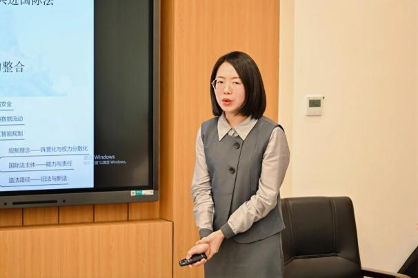 助理研究员、博士后冉高苒,以《数据财产的治理范式》为题进行发言。第六位报告人武汉大学国际法研究所博士研究生罗旷怡,以《网络空间国际法的体系化建构——从三个维度的问题意识出发》为题进行发言。第七位报告人中国人民大学TheGay