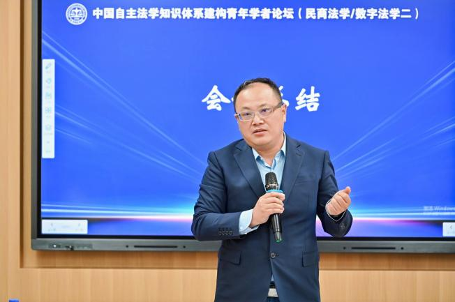 法学楼现实大厦和“中国自主法学知识体系”理论大厦。法学大楼已然建成,但“中国自主法学知识体系”的建构还在路上,需要在座大家的共同努力。其二是各位报告人在会场碰撞出思想的火花,学术内容切合民法与数字法的知识,坚持守正创新,守住民法内涵,创新数字前沿。其三是提出了个人的期许,他认为法的重要功能在于秩序的构建,安定性是法的重要功能,法在碰到问题时如何回应实践,主要有三个路径,一是改良,即用旧法解释新法,二是改革,即承认既有规范和调整规则,三是革命,即当旧体系无法解决时,去构建新的体系。当然,不论是改良、改革还是革命,最终目的还是回归到构建“中国自主法学知识体系”的道路上来。