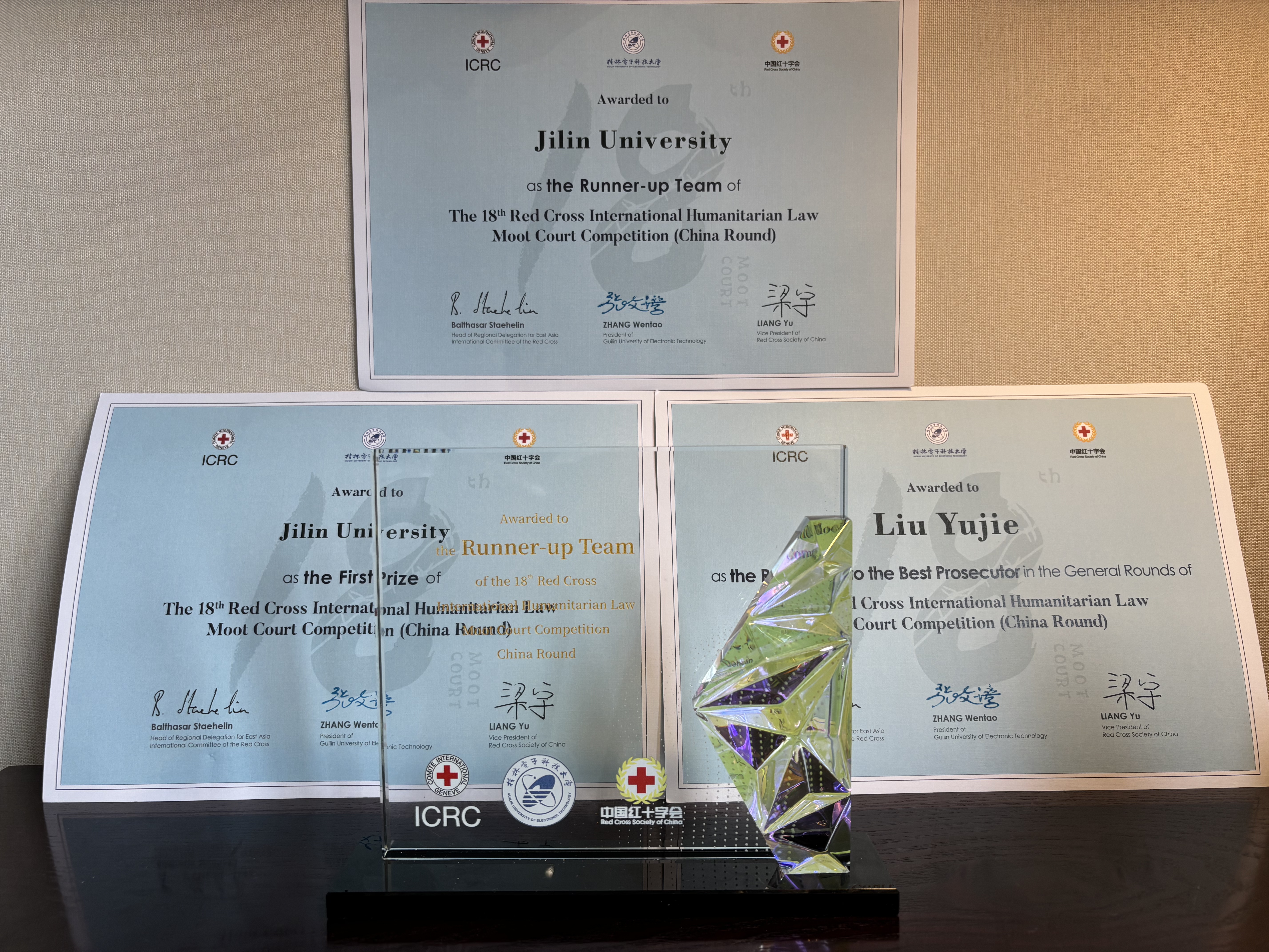 在本项赛事中所取得的最佳成绩!同时,刘玉杰同学荣获最佳检察官第二名,为团队再添荣耀。