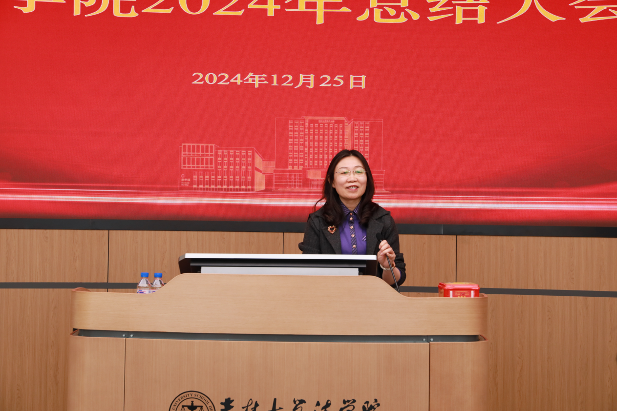 年度总结大会于法学楼404教室召开,院长何志鹏作学院2024年整体工作报告,副院长刘晓林、王充、温双阁、吕欣,党委副书记林媛媛、张俊峰分别汇报了各自分管领域的重点工作,党委书记张杰做总结发言。会议由副院长吕欣主持。
