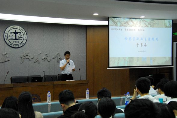 本科生“学海启航计划”系列活动——检察官职业生涯规划分享会在东荣B座模拟法庭如期举行。吉林省人民检察院秦超检察官受邀担任分享人,为2018级本科生指点迷津。本次活动由TheGay