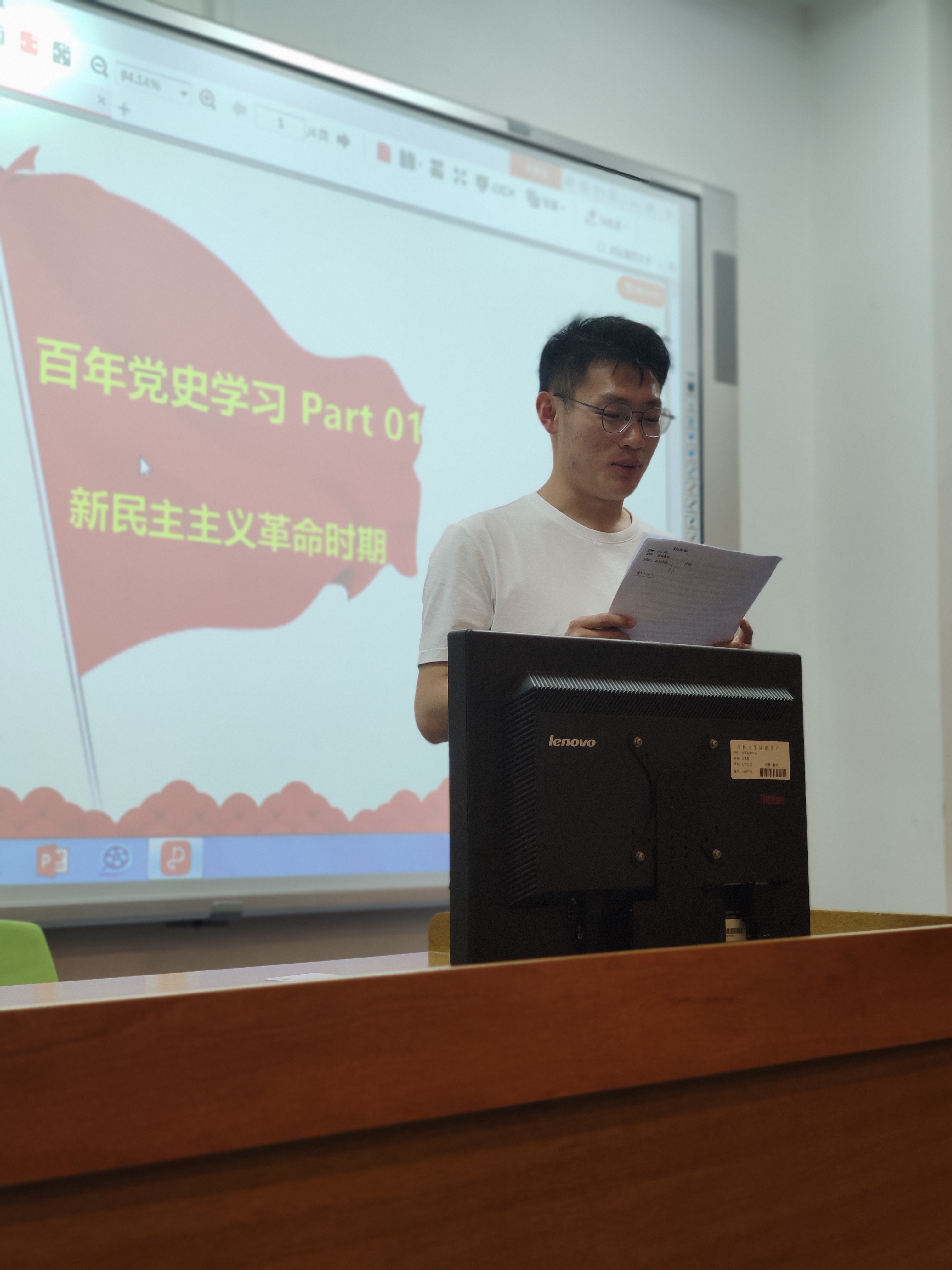 之后由党员代表和发展对象代表就所学习的党史内容向大家汇报:
