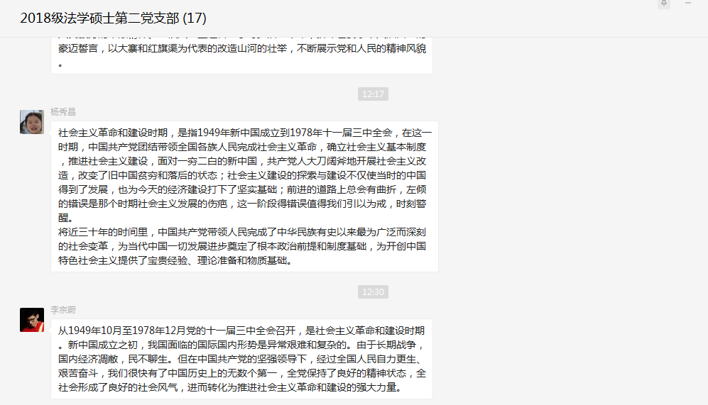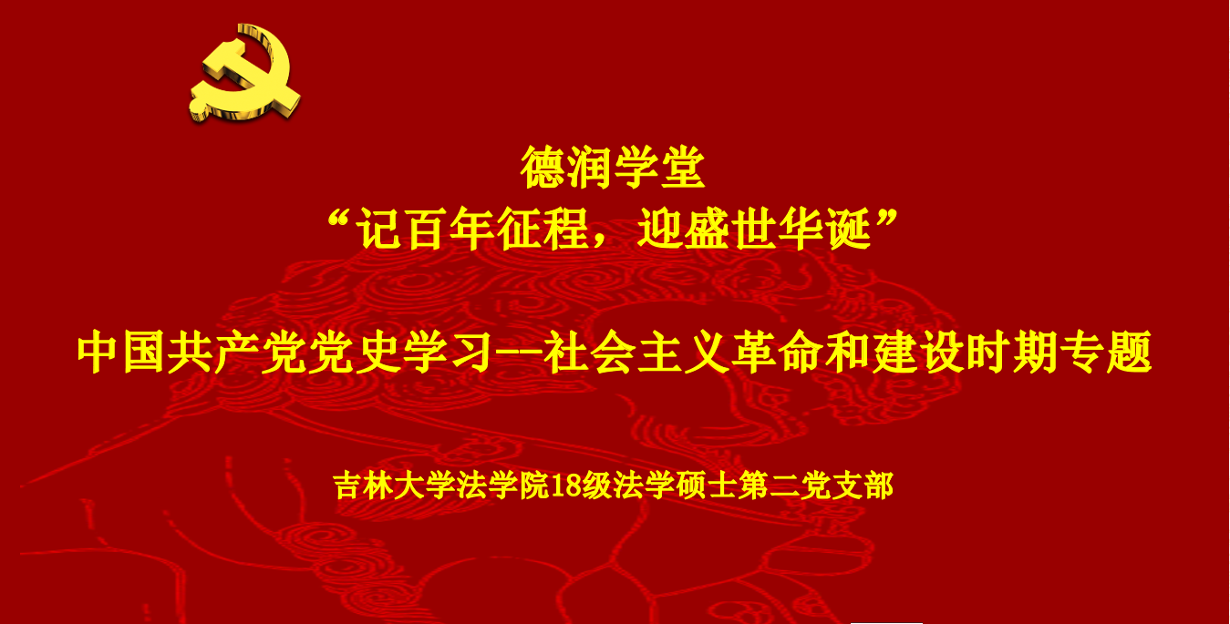 委员会关于在全院开展党史学习教育的实施方案》部署,系统开展全院师生党员要系统学习党的百年奋斗史的活动,2018级法学硕士第二党支部线上开展“中国共产党党史学习--社会主义革命和建设时期”专题学习。本次活动由支部书记吴金晏主持并担任领学,党支部全体成员共同参与。