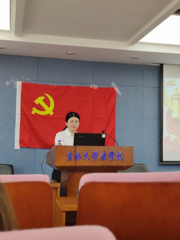 接着,2019级法学硕士王思琪作为新党员代表发言。她代表新党员们承诺:将始终忠诚于党和人民,以身边的优秀党员同志为榜样,用党员的标准严格要求自己,将自己的智慧和热血融入到社会主义建设中去,融入到党和人民的事业中去,用实际行动践行自己今天的誓言!