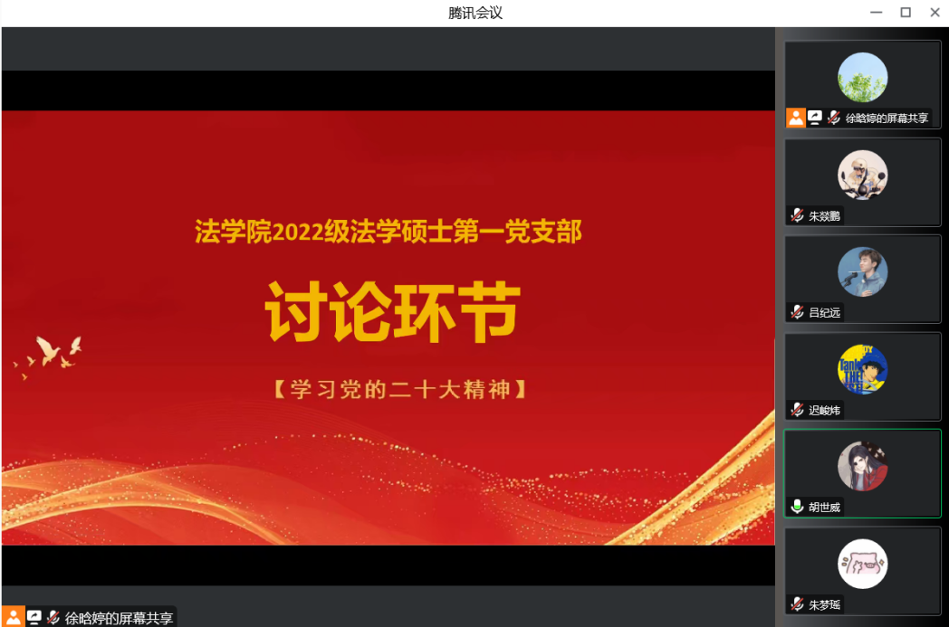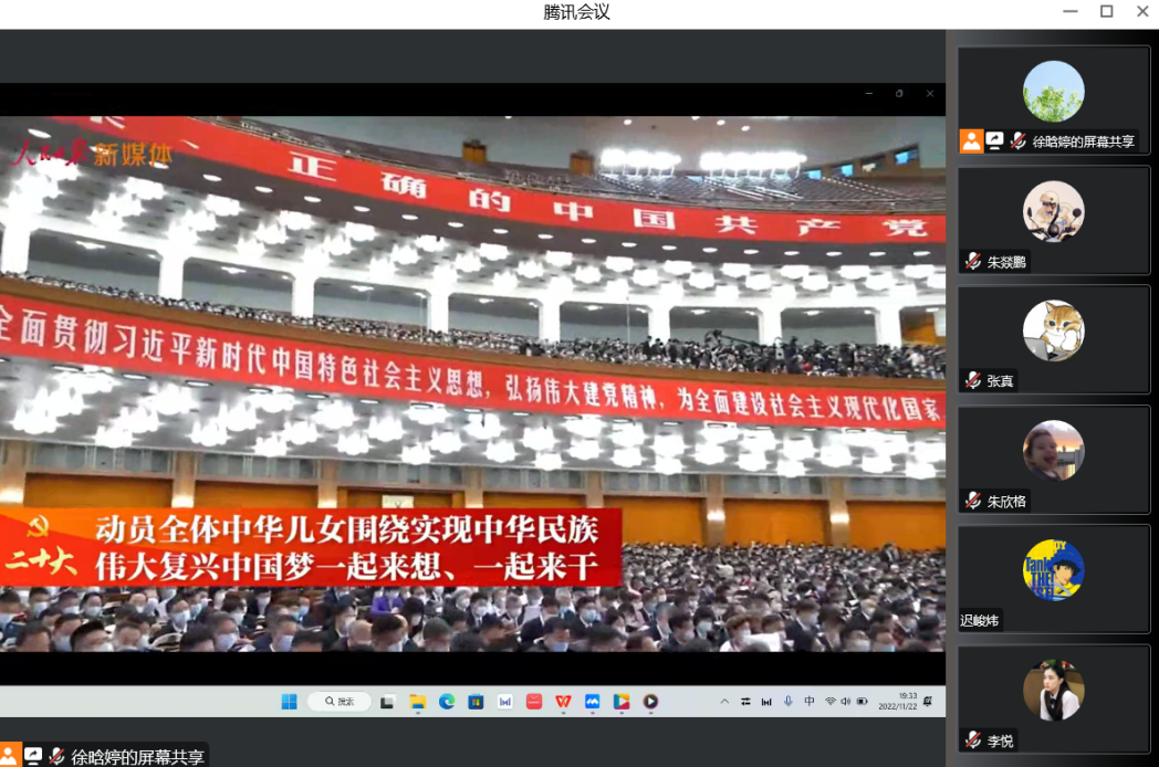2022级法学硕士学生第一党支部于11月22日晚召开线上深入学习党的二十大精神主题党日活动。