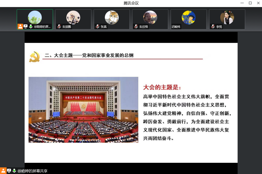 在讲解过程中,徐晗婷同志注重带领党支部成员学原文、悟原理,细心讲解好报告的每一处内容。徐晗婷同志强调:“习近平总书记所作的党的二十大报告,进一步指明了党和国家事业的前进方向与中心任务,是我们党团结带领全国各族人民在新时代新征程坚持和发展中国特色社会主义的政治宣言和行动纲领。”
