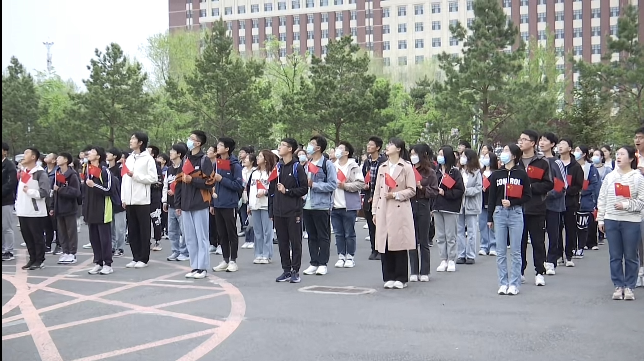 仪式最后,全体师生合唱《歌唱祖国》,唱出了爱国主义的豪迈情怀。在歌声中,青年学子对祖国深深的热爱与献身精神得以淋漓尽致地表达。