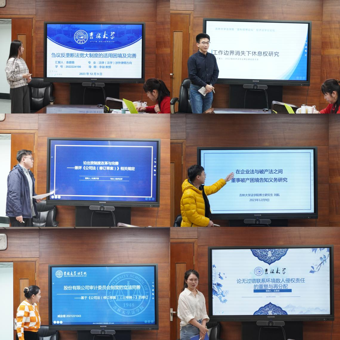 本次论坛分为上午和下午两个时段进行,每位汇报人发言后,经济法学科组各位老师根据发言人的论文和PPT宣讲内容提出问题和点评意见并予以评分。